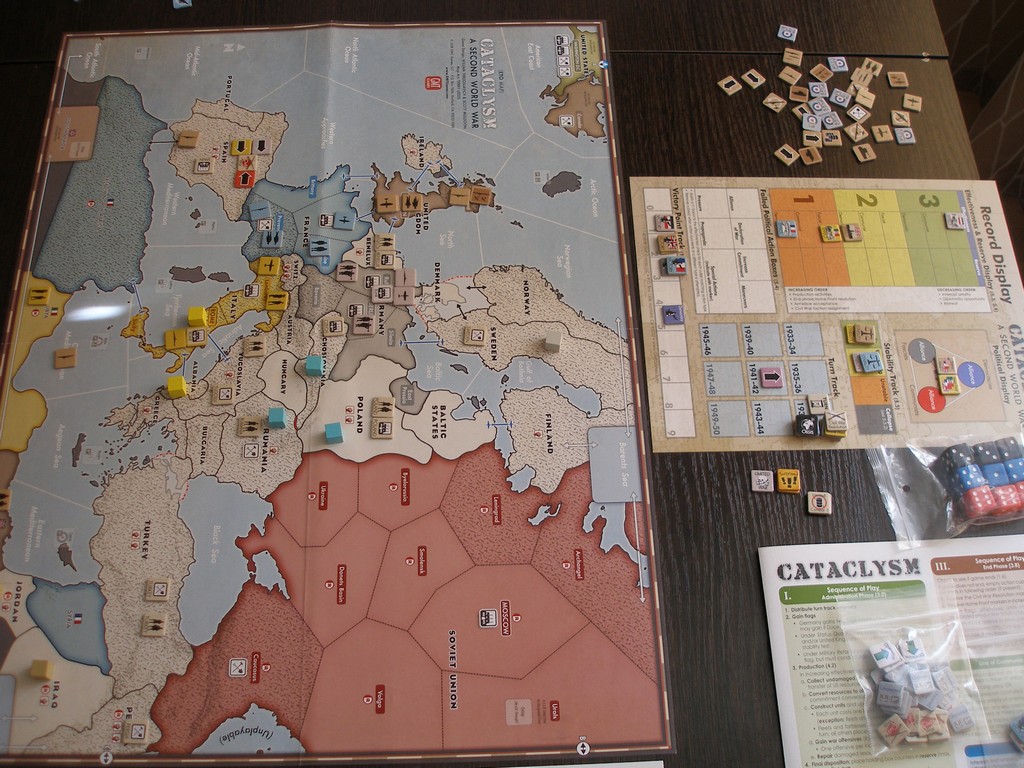Cataclysm: A Second World War - это игра глобально-стратегического уровня, посвящённая эпохе второй мировой войны. Которой может и не произойти. Игра расчитана на 3 игроков, но есть сценарии для 2 и 4 человек.